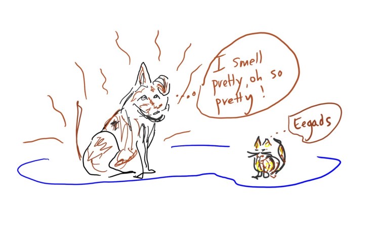 The cat got sprayed just enough to lovingly rub the scent on to Had.