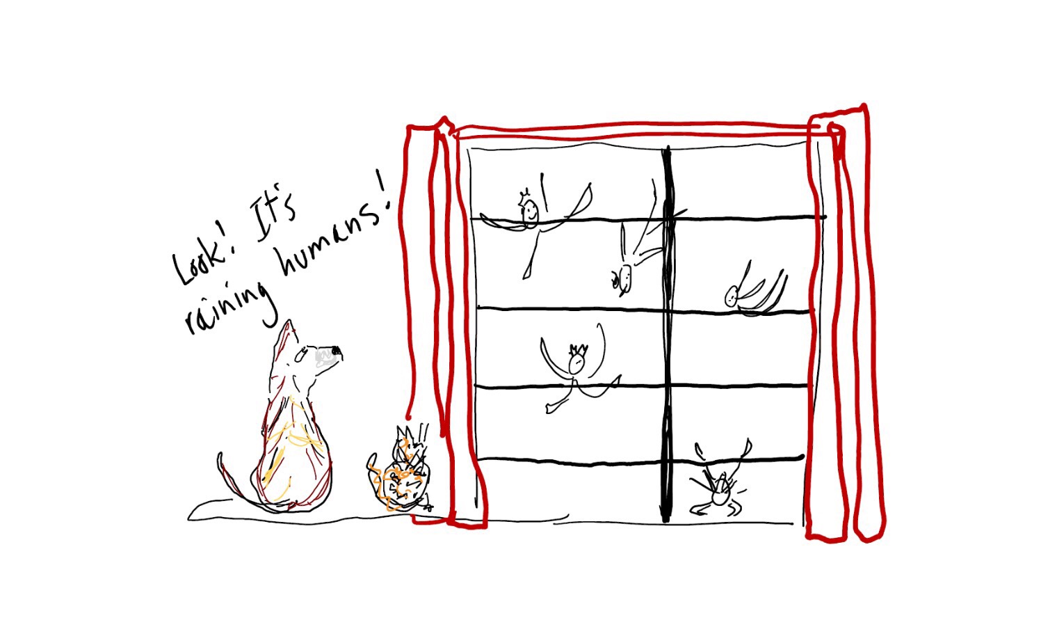 “Weren't you listening? He just said rain in the morning, may clear up by noon.”