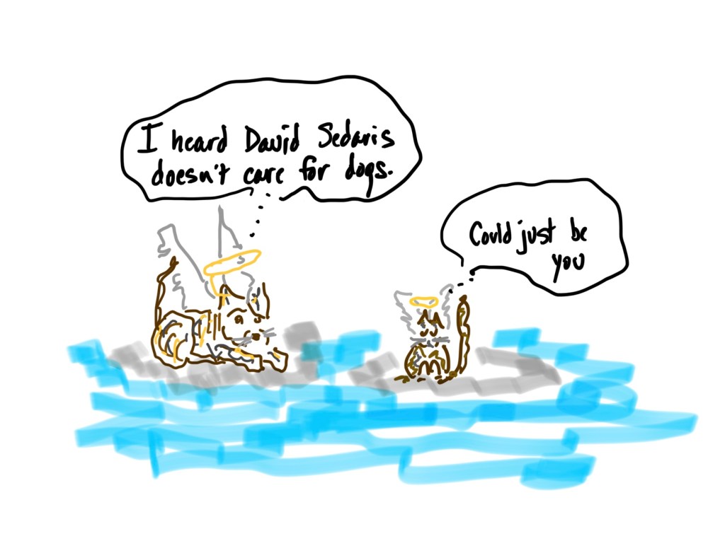 So I penned a list of “Five Interesting Coincidental Similarities Between David Sedaris and Alexandra Langstaff” and put it on a piece of matting board suitable for framing.